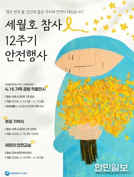 한민일보 서울포커스 임경복 기자 | 세종특별자치시교육청은 4.16세월호참사 12주기를 맞아 희생자를 추모하고 안전 문화를 확산시키기 위해 오는 4월 13일부터 18일까지 ‘4.16세월호참사 12주기 안전(추모) 주간’을 운영한다.