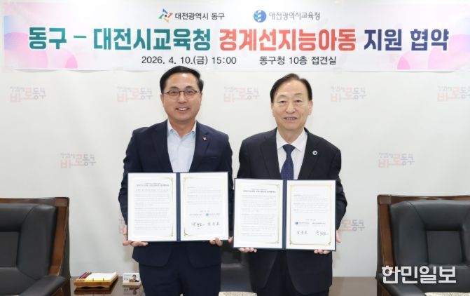한민일보 서울포커스 임경복 기자 | 대전 동구는 10일 대전시교육청과 ‘경계선지능아동(느린학습자) 성장지원사업’의 원활한 추진을 위해 업무협약을 체결했다고 밝혔다.