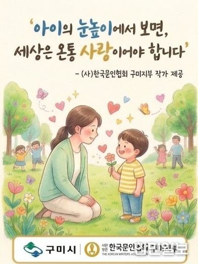한민일보 서울포커스 김봉순 기자 | 구미시가 시민 일상 속에서 아동존중과 긍정양육 문화를 자연스럽게 확산시키기 위한 새로운 시도에 나선다. 최근 아동을 둘러싼 사건·사고와 양육 불안이 사회 전반의 문제로 떠오르는 가운데, 구미시는 아동학대 예방의 실효성을 높이기 위해 'I(아이) 든든 1-Line(한 줄) 메시지 캠페인'사업을 4월 10일부터 본격 추진 중이다.