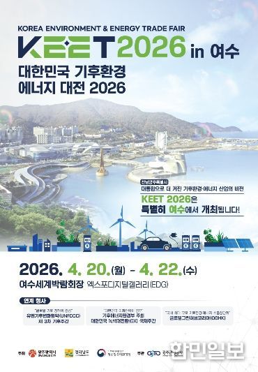 한민일보 서울포커스 진광성 기자 | 광주광역시는 기후환경·에너지 산업의 미래 비전을 제시할 ‘2026 대한민국 기후환경에너지 대전’을 오는 20일부터 22일까지 사흘간 여수세계박람회장 엑스포디지털갤러리에서 개최한다.