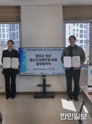 최형욱 완주청년종합지원센터장은 “이번 협약을 통해 청년들이 겪는 심리적 어려움을 조기에 발견하고 전문적인 지원으로 연결할 수 있는 기반이 마련됐다”며 “앞으로도 지역 내 다양한 기관과 협력해 청년들이 건강하고 안정적으로 성장할 수 있도록 적극 지원하겠다”고 말했다.