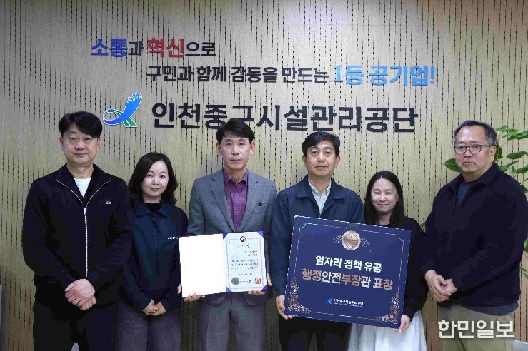 한민일보 서울포커스 김다남 기자 | 인천중구시설관리공단은 2025년 지방공공기관 일자리 정책 분야에서 행정안전부로부터 ‘일자리 정책 추진 유공’ 장관 표창을 받았다고 13일 밝혔다.