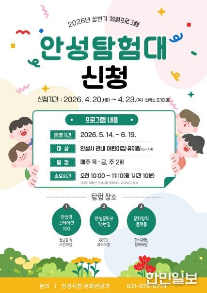 참여를 원하는 어린이집 및 유치원은 안성시청 홈페이지의 [고시/공고] 게시판을 참고해 4월 20일부터 23일까지 이메일로 신청하면 된다. 접수는 선착순으로 마감될 예정이다.