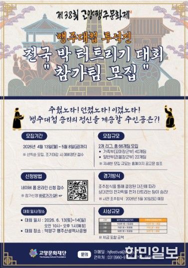 한민일보 서울포커스 김은금 기자 | 고양문화재단은 오는 6월 열릴 고양행주문화제의 대표 프로그램 중 하나인 행주대첩 투석전 ‘전국 박 터트리기 대회’의 참가팀을 오는 5월 8일까지 모집한다.