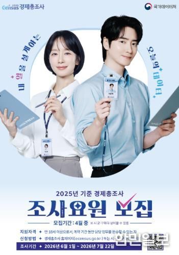 한민일보 서울포커스 김은금 기자 | 고성군은 오는 6월부터 전국적으로 시행되는 ‘2025년 기준 경제총조사’의 원활한 수행을 위해 조사 요원 29명을 모집한다고 밝혔다.