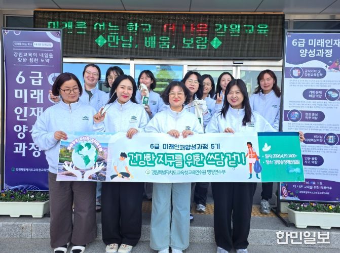 한민일보 서울포커스 곽중희 기자 | 강원특별자치도교육청교육연수원은 4월 13일, ‘6급 미래인재양성과정 5기’ 연수생들과 함께 지역 생태 자산의 가치를 보존하고 기후 위기 대응을 실천하기 위한 ‘건강한 지구를 위한 환경봉사 쓰담걷기’ 프로그램을 운영했다.