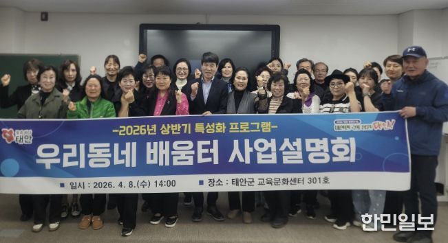 한민일보 서울포커스 임경복 기자 | 태안군이 맞춤형 교육 서비스로 학습 접근성을 높이고 균형 있는 평생학습 문화 조성을 위해 13일부터 ‘2026년 우리동네 배움터’ 상반기 프로그램을 운영 중이다.