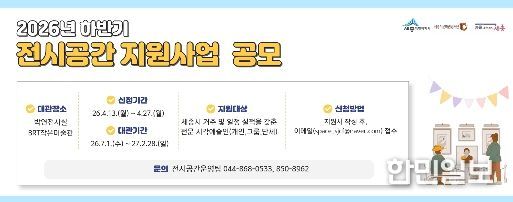 한민일보 서울포커스 김윤이 기자 | 세종시문화관광재단은 지역 시각예술인의 창작활동을 지원하고 시민들에게 다양한 전시 관람 기회를 제공하기 위해 ‘2026년 하반기 전시공간 지원사업 공모’를 진행한다.