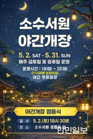이번 야간개장은 5월 2일부터 31일까지 매주 금·토·일요일과 공휴일에 진행되며, 해당 기간 동안 방문객들은 무료로 야간 관람을 즐길 수 있다.