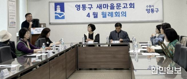 한민일보 서울포커스 진광성 기자 | 수원시 영통구는 지난 13일 망포2동 행정복지센터에서 새마을문고회 주관으로 각 동 새마을문고 회장들이 참석한 가운데 월례회의를 열고, 지역사회 독서문화 확산과 효율적인 도서관 운영 방안을 논의했다고 밝혔다.
