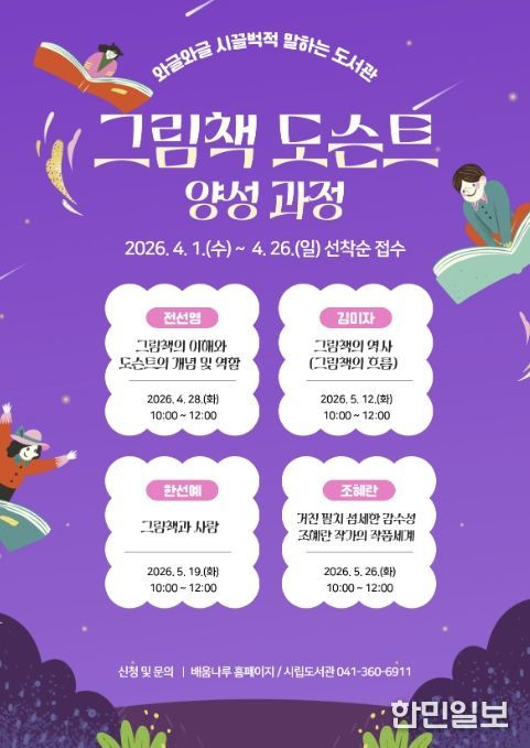 한민일보 서울포커스 임경복 기자 | 당진시는 독서 경험을 문화 향유로 확장하고 참여형 문화 콘텐츠를 강화하기 위해 오는 28일부터 ‘그림책 도슨트 양성 과정 교육’을 운영한다고 15일 밝혔다.