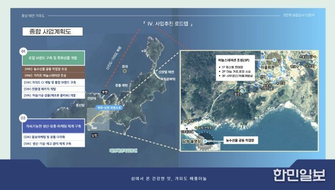 가의도는 지난 2023년 공모 선정 이후 1단계 사업을 통해 마늘 소스 시범 판매를 시행했으며, 2025년 섬 특성화 사업 성과공유회에서 1단계 부문 최우수상을 수상하는 등 주민 역량 강화 활동을 지속적으로 펼쳐왔다.