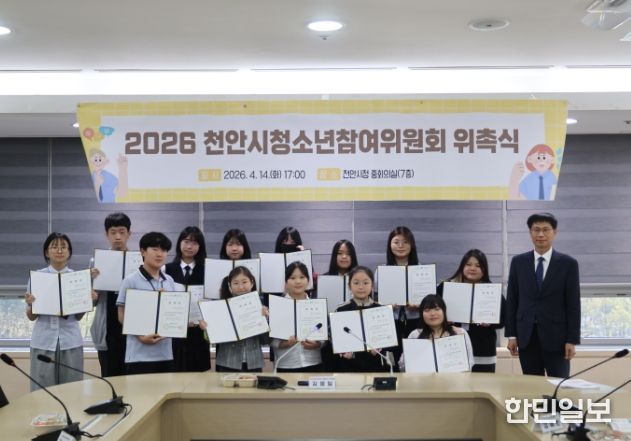 한민일보 서울포커스 황준형 기자 | 천안시와 천안시청소년재단이 청소년들의 시정 참여 기회를 확대하고 정책 실효성을 높이기 위해 ‘2026년 천안시청소년참여위원회’를 본격 가동한다고 15일 밝혔다.