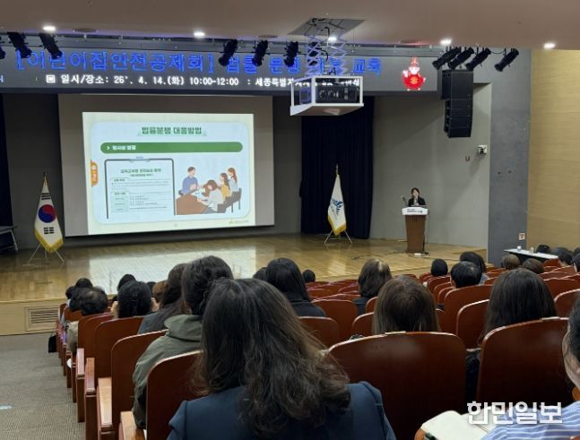 한민일보 서울포커스 김윤이 기자 | 세종특별자치시육아종합지원센터는 4월 14일 세종특별자치시청 4층 여민실에서 관내 어린이집 보육교직원을 대상으로 200여명을 대상으로‘2026년 법률 분쟁 대응 교육’을 실시했다고 밝혔다.