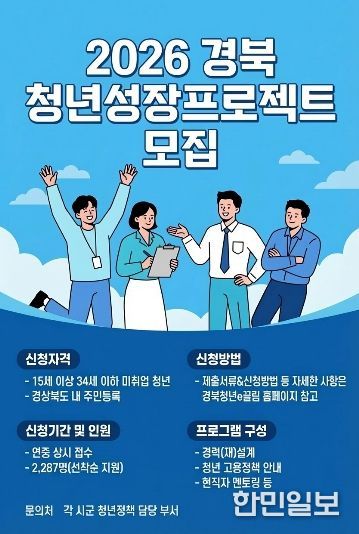 한민일보 서울포커스 임철현 기자 | 경상북도는 취업난으로 구직 의욕을 잃은 도내 미취업 청년들을 위해 올해 ‘청년성장 프로젝트’를 본격 운영한다.