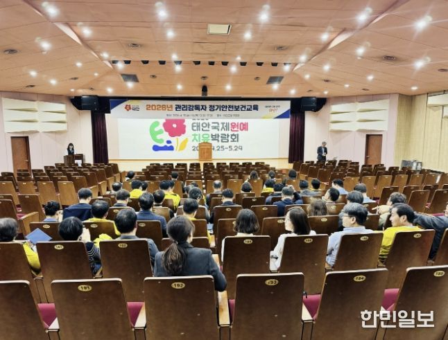 한민일보 서울포커스 임경복 기자 | 태안군이 지난 15일부터 이틀간 군청 대강당에서 부서장 등 관리감독자 40여 명이 참석한 가운데 2026년 관리감독자 정기 안전보건교육 집체교육을 실시했다.