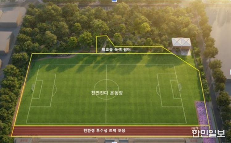 현암초에는 빗물 순환형 천연잔디 운동장이 조성된다. 빗물 순환형 천연잔디는 비가 오면 빗물을 저장해 이를 잔디 생육 등 관리에 활용하는 장치다.