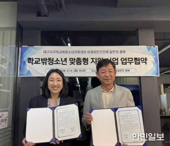 한민일보 서울포커스 임경복 기자 | 대구 서구학교밖청소년지원센터는 지난 4월 14일 비영리민간단체 ‘일만의 행복’과 학교밖청소년 지원을 위한 업무협약을 체결했다.
