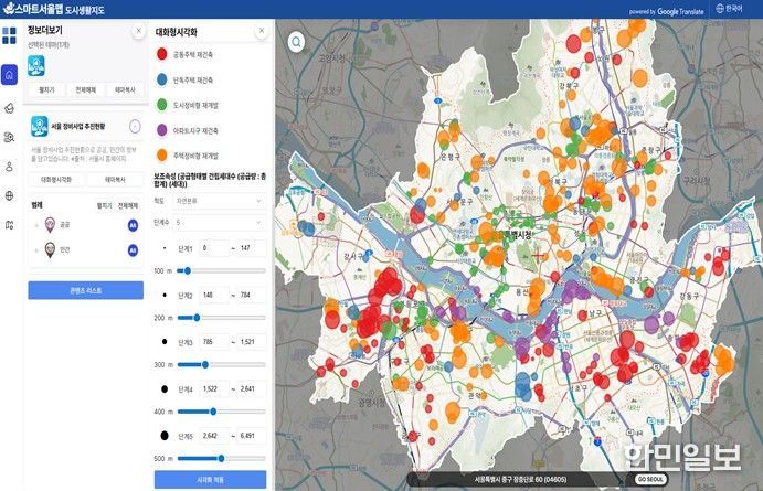 한민일보 서울포커스 국용호 기자 | 서울시가 온라인 지도 서비스 ‘스마트서울맵’을 한 단계 업그레이드했다. 복잡한 정책 정보를 시민이 지도위에서 한눈에 이해할 수 있도록 한 ‘차세대 도시생활지도’와 ‘대화형 인구-정책지도’를 17일부터 새롭게 선보인다.