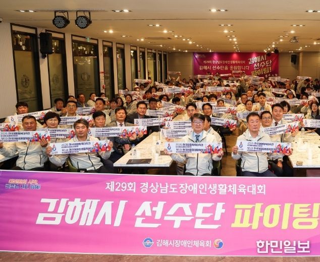 한민일보 서울포커스 최성훈 기자 | 김해시장애인체육회는 16일 김해 라페스타뷔페에서 제29회 경상남도장애인생활체육대회에 참가하는 김해시 선수단 결단식을 개최했다.