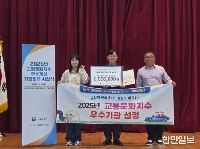 횡성군은 16일 상주교통안전체험교육센터에서 열린 ‘2025년 교통문화지수 우수 지자체 시상식’에서 80개 군 지역 중 전국 3위(강원특별자치도 내 1위)를 차지하며 기관 표창을 수상했다고 밝혔다.