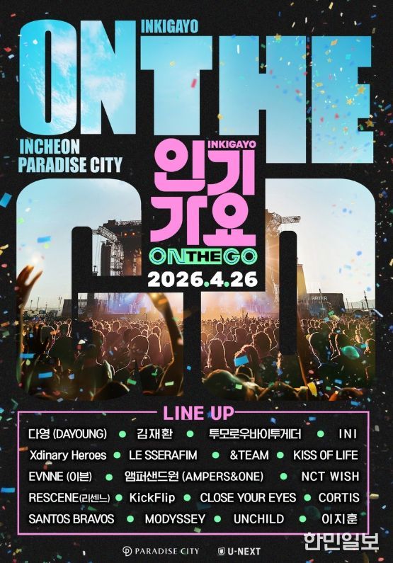 오는 4월 26일(일) 인천 파라다이스시티에서 개최되는 ‘인기가요 ON THE GO’는 SBS 대표 음악 프로그램 ‘인기가요’의 스페셜 공연 프로젝트로, 기존 스튜디오 중심의 음악 방송을 넘어 팬들이 있는 곳으로 직접 찾아가는 콘셉트로 기획됐다. 생방송 현장의 에너지와 공연의 몰입감을 결합한 새로운 형태의 K-POP 공연으로, 아티스트와 관객이 더욱 가까이 호흡하는 특별한 경험을 선사할 예정이다.