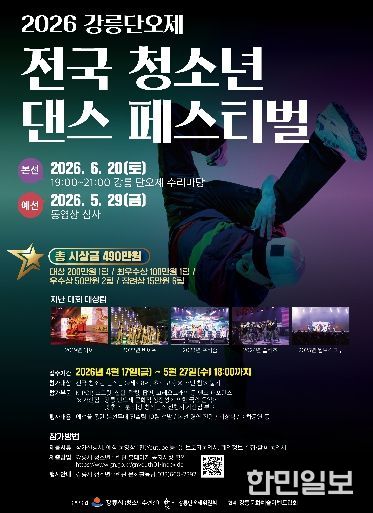 한민일보 서울포커스 임경복 기자 | 강릉시 청소년수련관은 오는 6월 20일 오후 7시 강릉단오제 수리마당에서 개최되는 ‘2026 강릉단오제 전국 청소년 댄스 페스티벌’의 참가팀을 17일부터 5월 27일까지 모집한다.