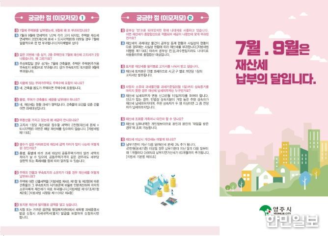 한민일보 서울포커스 김봉순 기자 | 영주시는 2026년 7월 정기분 재산세 부과를 앞두고 시민들의 세금 납부 이해도를 높이고 편의를 제공하기 위해 재산세 안내 리플릿을 제작·배부한다.