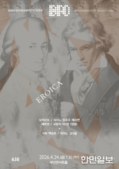 한민일보 서울포커스 임광현 기자 | 부산시립교향악단이 오는 4월 24일 오후 7시 30분, 부산콘서트홀에서 제630회 정기연주회 '에로이카(EROICA)'를 개최한다. 이번 공연은 고전주의의 균형에서 출발해 낭만주의의 확장으로 나아가는 흐름 속에서, 불안과 긴장을 넘어서는 인간의 의지를 조명하는 무대로 마련된다.