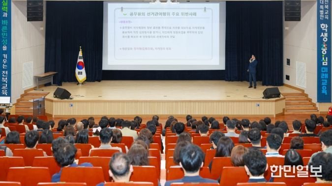 한민일보 서울포커스 임경복 기자 | 전북특별자치도교육청은 6월 3일 치러지는 전국동시지방선거를 앞두고 공무원의 정치적 중립 의무에 대한 이해를 높이고 선거 관련 위법행위를 사전에 예방하기 위해 17일 창조나래 시청각실에서 전 직원 대상 직장교육을 실시했다.