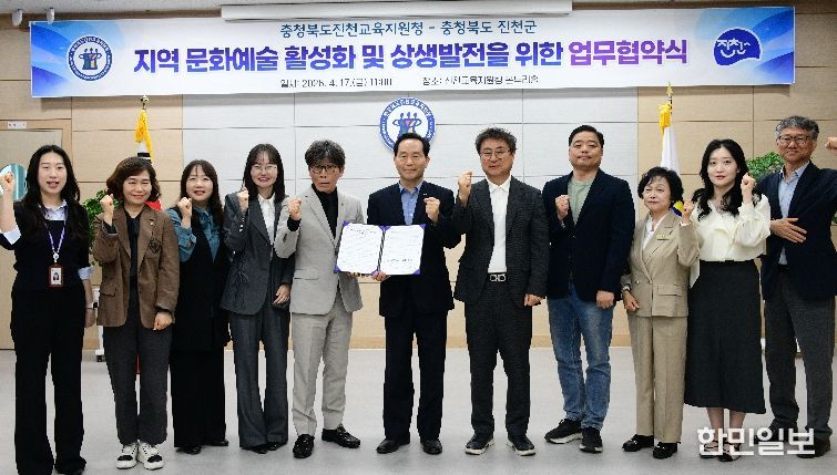 한민일보 서울포커스 김다남 기자 | 충청북도진천교육지원청과 진천군은 4월 17일 지역 문화예술 활성화 및 상생발전을 위한 업무협약(MOU)을 체결했다.