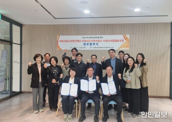 한민일보 서울포커스 진광성 기자 | 수원시 도서관사업소와 수원시청소년청년재단, 수원시서점협동조합이 지역 독서문화 활성화와 시민 독서활동 증진을 위해 협력하기로 했다.