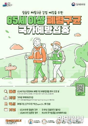 폐렴구균 예방접종은 65세 이상을 대상으로 평생 1회 무료 지원되고 있으며, 주소지와 관계없이 가까운 위탁의료기관에서 접종받을 수 있다.