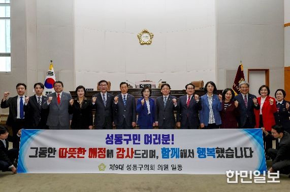 14명의 의원들은 지난 4년간의 의정활동에 아낌없는 성원을 보내준 성동구민에게 깊은 감사를 전하고, 제9대 의회의 임기가 끝나도 구민의 행복과 성동구의 발전을 위해 기꺼이 힘을 보태겠다고 다짐했다.