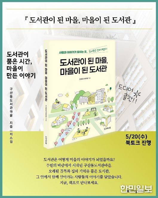 이순임 구산동도서관마을 관장은 “이번 책은 구산동도서관마을이 걸어온 10년을 정리한 기록이자, 주민과 도서관이 함께 만들어 온 시간을 담아낸 결과물”이라며 “북토크를 통해 더 많은 분들과 책의 의미를 나누고, 도서관의 다음 10년도 함께 그려보는 계기가 되길 바란다”고 전했다.