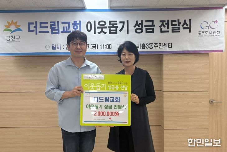 한민일보 서울포커스 곽중희 기자 | 금천구는 지난 17일 시흥3동에 소재한 더드림교회에서 관내 저소득층을 위해 성금 200만 원을 기부했다고 밝혔다.