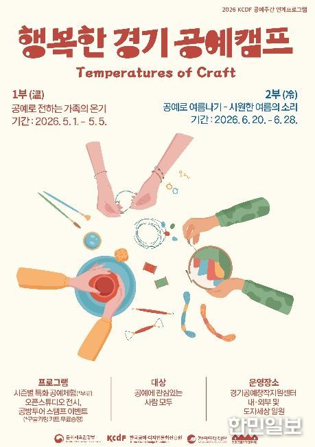한민일보 서울포커스 김윤이 기자 | 한국도자재단이 오는 5월 1일부터 경기공예창작지원센터(여주) 일원에서 체험·전시·이벤트를 결합한 참여형 프로그램 ‘2026 행복한 경기 공예 캠프’를 개최한다.
