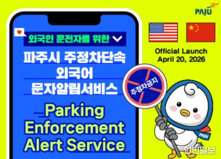 한민일보 서울포커스 진광성 기자 | 파주시는 4월 20일부터 외국인 운전자를 대상으로 한 ‘주정차 단속 외국어 문자 알림 서비스’를 시행한다.
