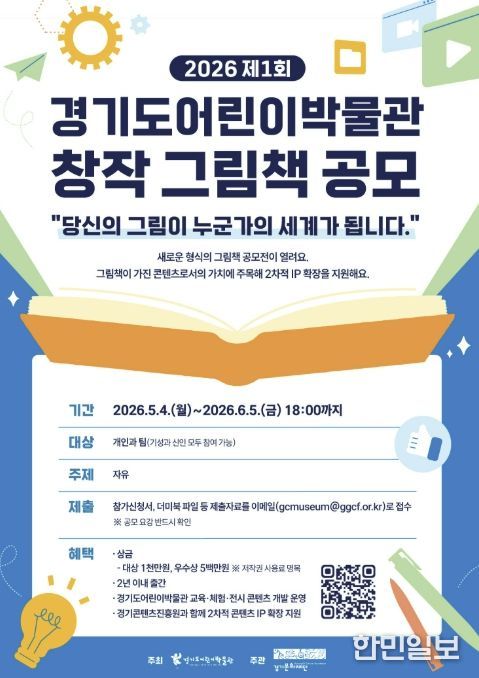 공모 접수는 오는 5월 4일부터 6월 5일까지 약 한 달간 진행되며, 자세한 공고 내용은 4월 20일부터 경기도어린이박물관 및 경기문화재단 누리집(홈페이지)을 통해 확인할 수 있다. 그림책 작가를 꿈꾸거나 새로운 도전을 원하는 창작자라면 누구나 참여할 수 있다.