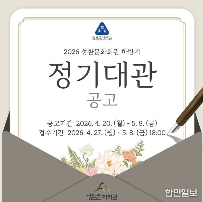 신청은 성환문화회관 누리집에서 가능하며, 선정 결과는 내달 15일 확인할 수 있다.