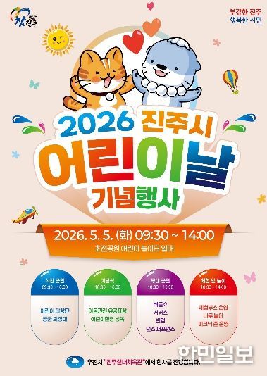한민일보 서울포커스 김은금 기자 | 진주시는 제104회 어린이날을 맞아 5월 5일 초전공원 어린이 놀이터 일원에서‘2026년 어린이날 기념행사’를 개최한다.