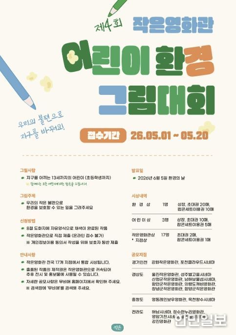 한민일보 서울포커스 김은금 기자 | 산청군은 ‘제4회 작은영화관 어린이 환경 그림대회’를 개최한다고 20일 밝혔다.