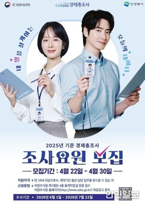 한민일보 서울포커스 심기옥 기자 | 의정부시는 6월 1일부터 실시되는 ‘2025년 기준 경제총조사’의 원활한 추진을 위해 조사요원 77명을 모집한다.