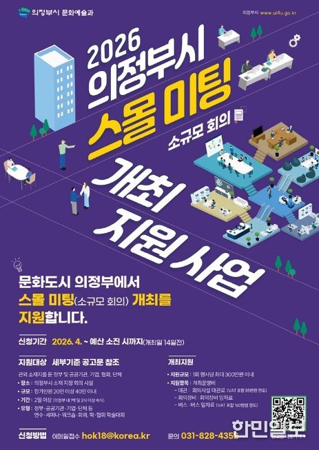 한민일보 서울포커스 심기옥 기자 | 의정부시는 관외에 소재지를 둔 기관 및 단체 등을 대상으로 ‘2026 의정부시 스몰미팅(소규모 회의) 개최 지원사업’을 추진한다.