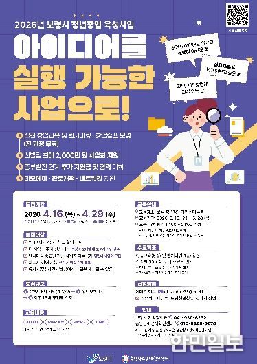 한민일보 서울포커스 임철현 기자 | (재)충남창조경제혁신센터는 보령시와 함께 '2026년 보령시 청년창업 육성사업'에 참여할 예비 청년창업가를 오는 4월 29일까지 모집한다고 밝혔다.