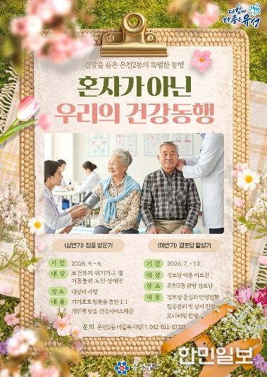 정용래 유성구청장은 “방문형 서비스와 거점형 관리를 병행해 소외 없는 보건복지 안전망을 조성하겠다”라며 “이번 사업을 통해 수집된 건강 지표를 데이터 기반으로 분석해 체계적인 만성질환 예방 관리 체계를 구축하겠다”라고 말했다.