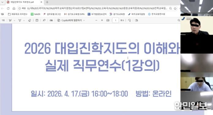 한민일보 서울포커스 진광성 기자 | 경기도파주교육지원청은 급변하는 대입 환경에 발맞추어 교원의 대입진학지도 전문성을 높이고 학생 맞춤형 진학 교육을 실현하기 위하여 '2026 대입진학지도의 이해와 실제 직무연수'를 운영한다.