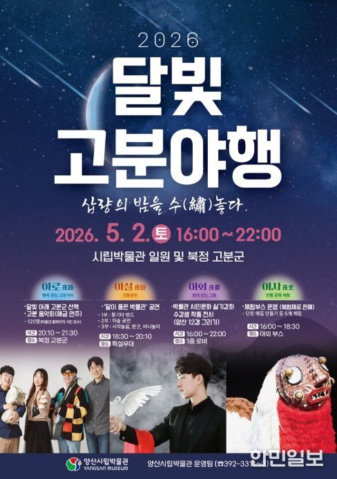 양산시립박물관에서 알차게 준비한‘2026 달빛 고분 야행(夜行)’에 대한 자세한 정보는 양산시립박물관 홈페이지 또는 운영팀으로 문의하면 된다.