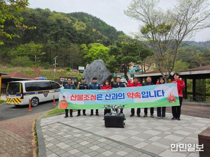 현장에서는 드론을 투입해 산림 내 흡연 및 취사 등 불법행위에 대한 공중 감시를 실시했으며, 등산객들을 대상으로 인화물질 소지 금지와 산림 인접지역 화재 예방 수칙과 산불 발생 시 신고 요령을 안내하고 리플릿을 배부했다.