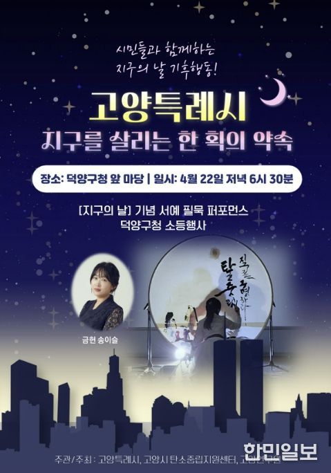한민일보 서울포커스 김은금 기자 | 고양특례시가 제56주년 지구의 날을 기념해, 오는 22일 저녁 8시부터 10분간 고양시 전역에서 소등행사를 진행한다.